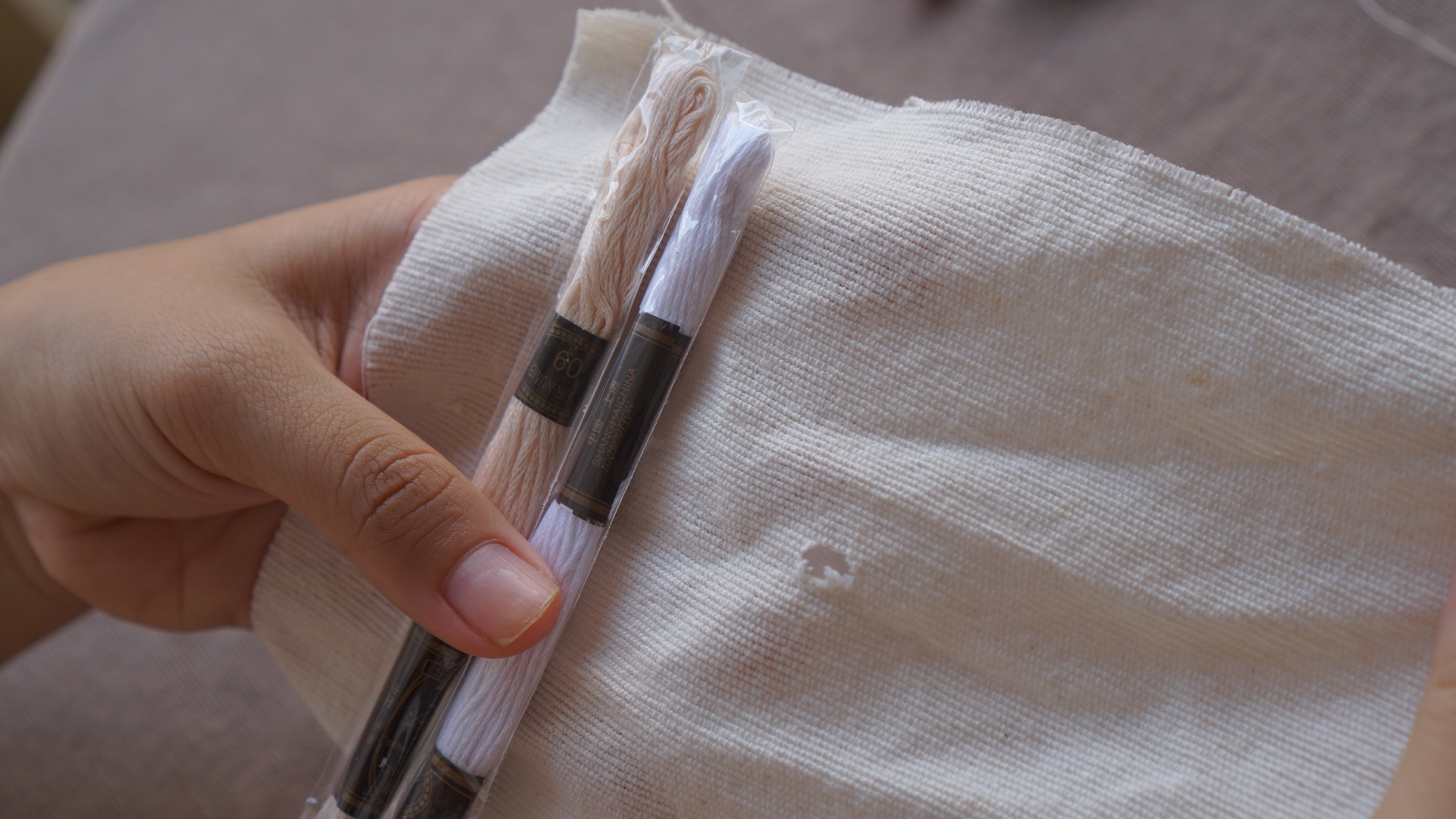 Step 2. Match your yarns to find the most similar color ones to your fabric.