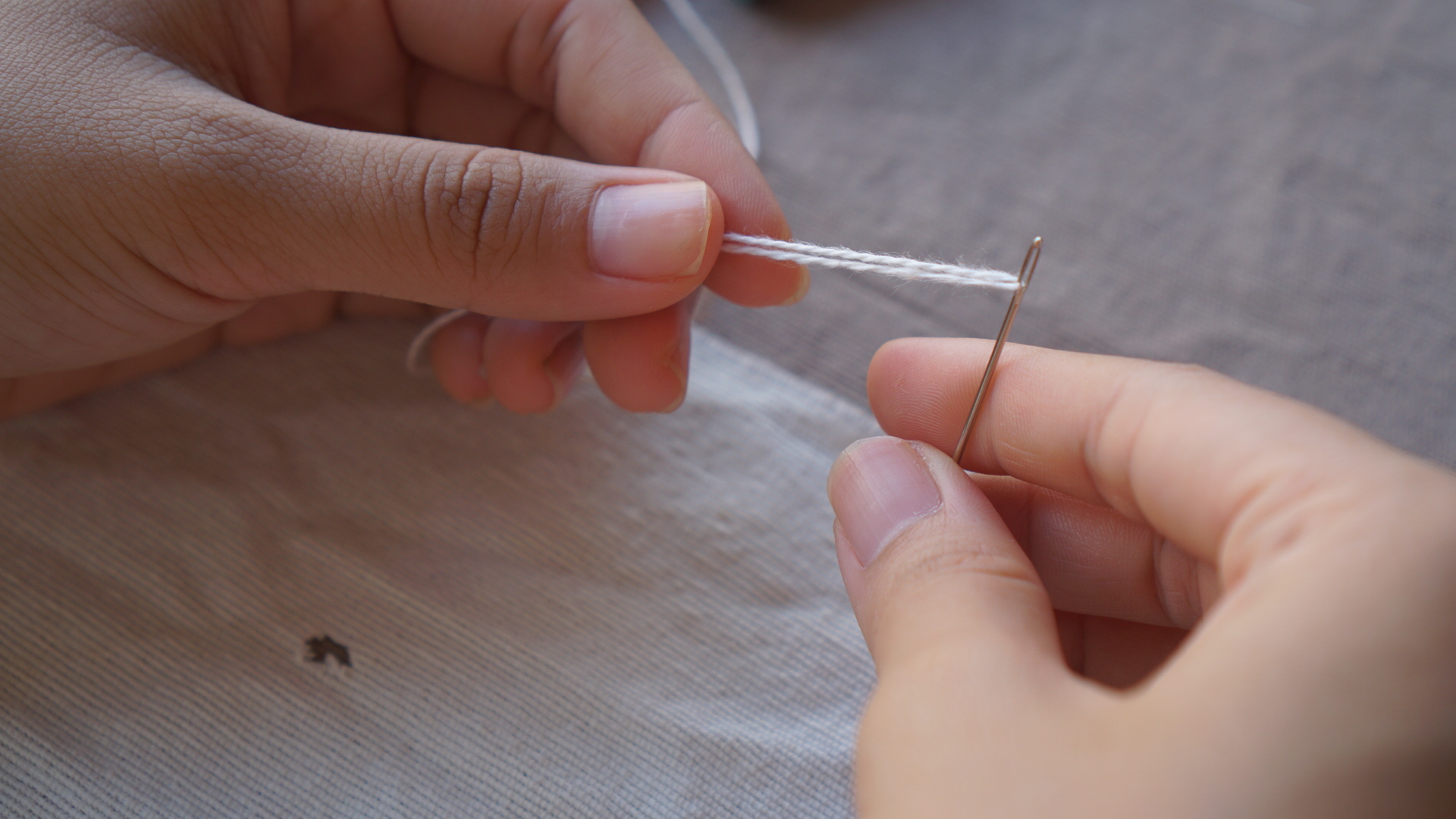 Step 3. After you found the matching yarn, you may start by inserting the yarn to your tapestry needle.